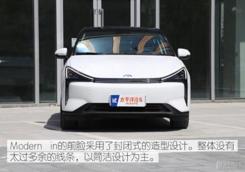 外观方面,摩登Modern in采用跨界风格设计,整体造型简约,其前脸采用电动车型常见的封闭式格栅造型,搭配贯穿式LED日行灯,带来很强辨识度。
