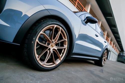 与Cayenne Turbo Coupé相比,新车的前轮加宽了1英寸,且负倾角增加了0.45度,赋予轮胎更大的触地面积。