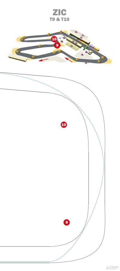 简单来说,ZIC是赛道的样本房,什么经典路数都有且不会太绝。比如T9和T10这个组合弯吧,舍T9取T10,让T9晚点、慢点入弯并打出一个大的转向角,遥遥指向T10出弯方向,使劲全油门往T11冲。