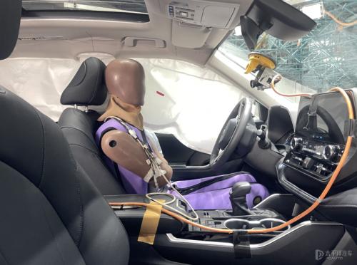 车内情况,碰撞瞬间车内侧气囊和气帘均可顺利弹出。值得一提的是,这些侧气帘在该项测试中尤为重要,能避免头部或身体直接与车侧相撞,最大限度减轻人员伤害的程度。另外,规程对于侧气帘的评价也有严格的要求,需要从外形尺寸、展开形态以及动态保护三个方面进行考量。