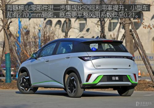 在开始之前我们先对今天测试的车辆简单了解一下,海豚是比亚迪全新e平台3.0的首款车型,由于该平台拥有核心零部件进一步集成化、标准化的设计,零部件占地更小空间更大,这就让海豚作为一款车长只有4125mm的小型车,轴距却达到了2700mm,同时达到了0.21的风阻系数对续航提升也起到了一定的效果。可以说这台车的设计初衷就是追求同级别最大空间和最高续航的产品。