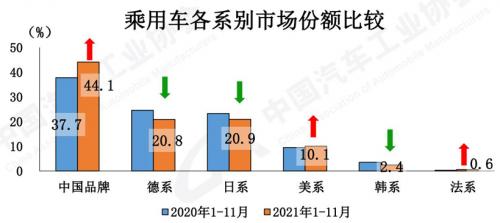 1-11月,乘用车市场累计销量达到1906万辆,同比增长7.1%。其中,中国品牌乘用车共销售840.6万辆,同比增长25.1%,占乘用车销售总量的比重为44.1%,占有率比2020年同期提升6.4个百分点。