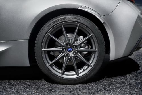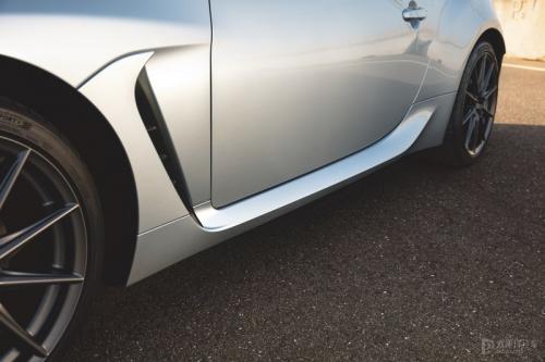 侧面上,作为一款双门跑车车型,甚是拉风的无框车门当然是可以有的,而且是必须要有;而流畅的车身搭配溜背的车顶线条,让全新BRZ似乎多了一份优雅。轮毂部分,新车装配有深灰色大尺寸轮毂,在营造出BRZ运动特性的同时,也带来更高的性能。