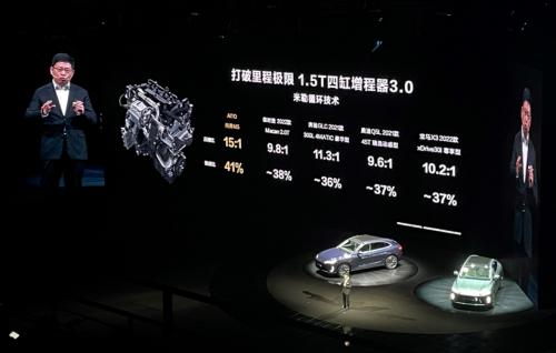 AITO问界M5搭载了华为DriveONE纯电驱增程平台,1.5T四缸增程器3.0,拥有15:1最高压缩比,41%的高热效率,以及3.2kW*h/L的最大发电效率,满油满电情况下车辆可实现CLTC工况续航1242公里。
