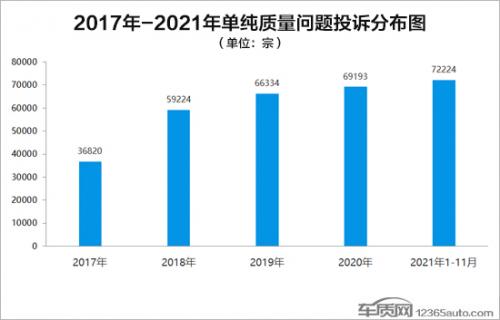 相比因芯片短缺导致交付产品配置缩水的情况,使用瑕疵零部件看似是更为合理的解决方案,不过其背后仍然暗藏着不可预测的质量危机。通过车质网近五年单纯质量投诉数据来看,呈现出逐年递增的态势,2021年1-11月单纯质量问题的投诉量高达72224宗,与2020年全年单纯质量问题投诉量总和相比上涨了4.4%。侧面也反映出国内消费者对于汽车产品出现质量问题的容忍度在降低,此时车企提出使用瑕疵零部件的计划,无疑进一步刺激了国内消费者的敏感神经。