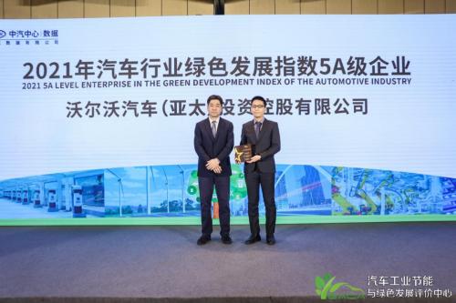 沃尔沃汽车(亚太)获颁绿色发展指数5A评级