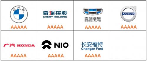 其中7家企业获得AAAAA级评级,分别是华晨宝马汽车有限公司、奇瑞控股集团有限公司、浙江吉利控股集团有限公司、沃尔沃汽车(亚太)投资控股有限公司、广汽本田汽车有限公司、上海蔚来汽车有限公司和长安福特汽车有限公司。浙江吉利的代表由于疫情原因未能现场出席。