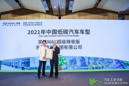 2021年中国生态汽车白金牌车型揭晓,首批低碳汽车认证结果公布