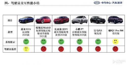 在驾驶员交互方面,驾驶员监控能力整体偏弱。比如,部分车型的智能行车能力强,但允许驾驶员长时间脱手,例如特斯拉、蔚来,存在较大的安全隐患。宝马iX3不但提供了脱手预警,还在驾驶员不响应情况下提供风险避免措施(如保持本车道内刹停)。