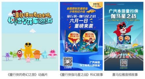 除了丰富的课堂形式,大名鼎鼎的“童行侠”已成为孩子们心中的偶像:“童行侠特别喜欢拯救小朋友,不让那些怪物靠近,我长大了也要像童行侠一样,拯救小朋友。”通过开发安全大使“童行侠”原创动画IP,广汽本田逐步强化了安全教育品牌资产,也进一步丰富了儿童教学的资源形式。目前,《童行侠的奇幻之旅》动画片、《童行侠伽马星之战》科幻故事以及喜马拉雅音频故事均已上线,将实用的交通安全知识可视化、趣味化、场景化。孩子们日常生活中即可通过精彩剧情,快乐学习道路安全知识。