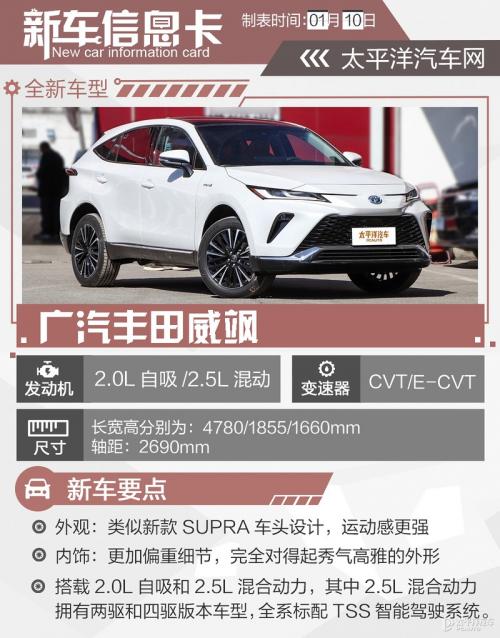 1月10日,广汽丰田威飒(询底价|查参配)正式上市,售价为21.68-30.38万元,推出汽油版与双擎版两种共6款车型款车型。据悉,新车将在三月中旬陆续交付,抢先下定也能获得各种购车福利。