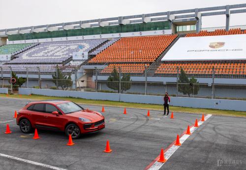 主办方让我们去玩了两个小游戏,一个是绕桩,一个是倒车出入库,前者可以试验Macan对劈弯侧倾的抑制和高速避险的极限,后者能让大家了解Macan车体的灵活性。