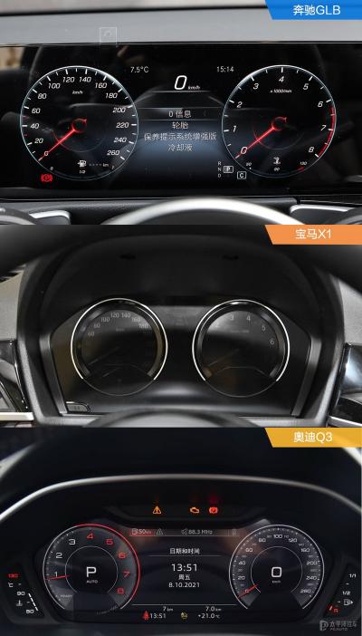 除了宝马X1保留了机械仪表外,奔驰GLB与奥迪Q3都用上了全液晶仪表和大尺寸的中控屏,设计上奔驰GLB的双12.3英寸高清触摸屏更为出色,毕竟这一设计是众多车型争相模仿的对象。其中,宝马X1的10.25英寸中控屏内置的车机系统相对老旧;奥迪Q3 10.1英寸的中控屏内置了目前奥迪最新的Asterix安卓应用平台,拥有一定的智能互联功能。而奔驰GLB则标配了智能手机互联系统、MBUX智能人机交互系统包括自然语言理解功能,在智能化方面更进一步。
