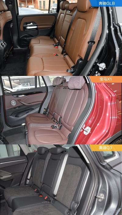 三款车型的第二排座椅均保持了前排座椅的做工水准,同时第二排座椅也均配备了后排出风口以及USB充电接口,由于奔驰GLB为7座车型,因此其第二排座椅支持前后滑移,滑移的幅度并不小。