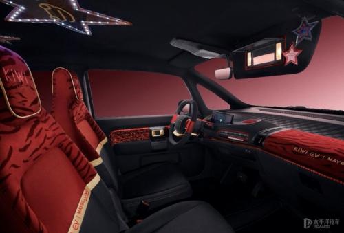 内饰方面,KiWi Beauty Box整体采用“随行化妆间”设计元素,美妆镜、好莱坞道穹顶、流光氛围饰条、定制美妆储物空间等元素一应俱全,搭配大面积深红色彩装饰,既富含时尚出街潮流单品属性,又满足了收藏宝藏彩妆的需求。此外,红虎纹座椅和虎造型安全带扣,将“虎年”同样带入内饰氛围。