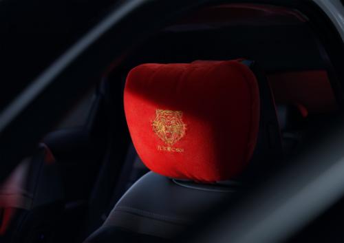 第二个套件为内饰方面的红运头枕,尺寸为28*22*12cm,采用柔软、透气的麂皮绒材质。
