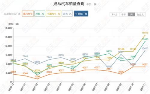 数据显示,2021年威马汽车全年销量44157辆,接近过去三年总和,虽然96.3%的同比增长非常好看,但销量不及其实际产能25万辆的20%,惨不忍睹。同时,比起销量翻倍的“蔚小理”,威马汽车占领市场的速度,已然落后了一大截。如今在提及头部新势力时,头部三强的固定认知已经形成,不再留有属于威马汽车的一席之地。