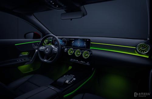 奔驰车型内饰豪华除了设计水平高而外,还有氛围灯的功劳,奔驰A级也不例外,它搭载了64色环境氛围照明系统,提供了10种颜色方案和100个级别的亮度调节,灯光环绕在车厢内,可以是实现不同颜色的持续渐变,例如跟随音乐节奏律动变化,每到夜间就给你一场灯光盛宴,让人爱不释手。