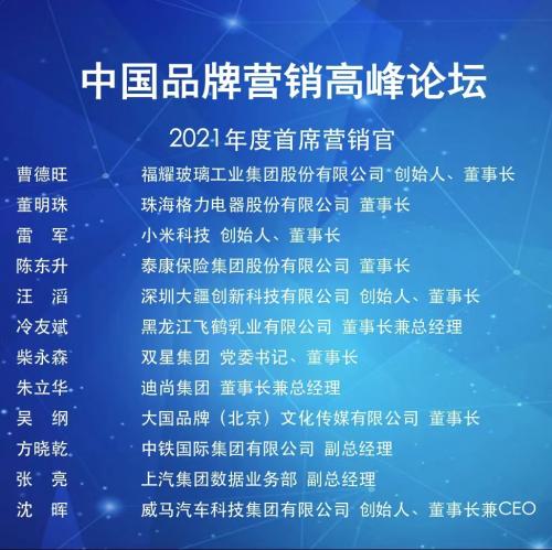 汽车信息网1月29日讯2022年开年,中国广告主协会(CANA)发布了“2021年首席营销官”榜单,由世界广告主联合会执委、中国广告主协会会长杨汉平签发了通过“中国品牌营销高峰论坛”评选出的本年度“首席营销官”获奖名单,福耀的曹德旺、格力的董明珠、小米的雷军等12位商界精英获此殊荣。值得一提的是,由于MG品牌在2021年的突出表现,负责操盘MG品牌的年轻上汽人张亮成为这12人中最年轻的获奖者。