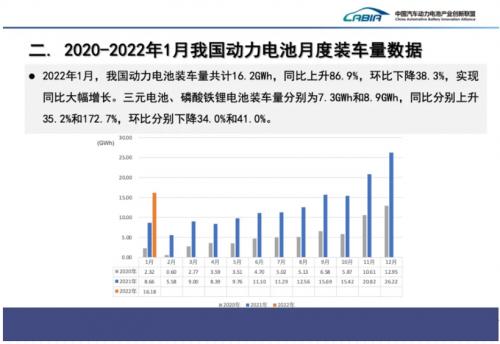 2月16日,中国汽车动力电池产业创新联盟(以下简称“电池联盟”)公布今年1月动力电池月度数据。数据显示,该月我国动力电池装车量较去年同期实现大幅增长,且动力电池企业装车量集中度再提升。