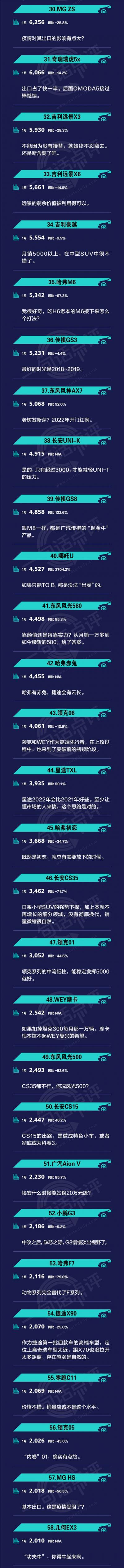 去年9月的点评,我写了《全新的三个信号》,技术脉动才是起决定作用的因素、Model Y超越哈弗H6、第二梯队自主品牌正在以“全球战略车型”寻找避开“内卷”的突破口。如今看来,这种演化还在进一步加剧。比如,2022年保150万辆争取200万辆奇瑞,最新的全球车型OMODA5,上市地点就选在已经开打并打下乌克兰的俄罗斯(这个开打是意料之外啊)。而宝骏SUV除了出口国内接近“全军覆没”的结果,也在无声地诉说着已经加速的“卷”。最后只能说,祝各车企2022年顺利。