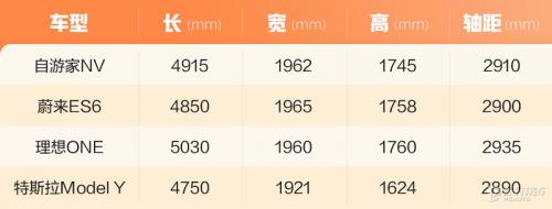 (自游家NV与主流30万元级别电动SUV尺寸对比)