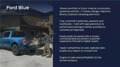 除了特斯拉这样的公司,大部分的汽车制造商都习惯将电气化等新兴业务的财务数据并入整体报表里,这使得关键数据很难被跟踪,也不利于业务反思和后续问责。福特将分别跟踪Ford Pro、Ford Blue和Ford Model e的财务报表,独立运营后,这些报表将直接反映每个实体的收入和支出。