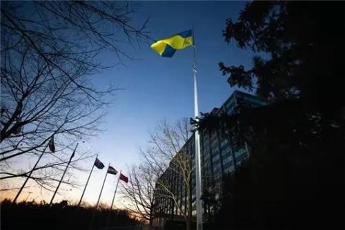 福特汽车的全球总部升起一面乌克兰的旗帜,该公司首席执行官吉姆*法利(Jim Farley)在其推特上写道:“今晚,我们通过这面特殊的旗帜,为战争中的乌克兰人民祈祷。”