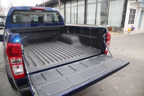 车尾的造型较为方正,尾箱的镀铬门把手上还集成了全景影像的后侧摄像头,并在黑色的后保险杠上安装了三颗倒车雷达探头,进一步的提升驾驶安全性。此外,货箱内部还喷涂了较为常见的货箱宝,起到一定的防护作用,货箱的长宽高为1480/1530/480mm。
