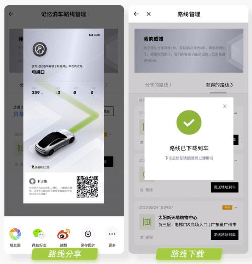 目前小鹏已在云端储存热门商圈停车场里靠近超充站或电梯口的记忆路线,在这些停车场,小P会主动为你推荐官方路线或者他人已分享路线。
