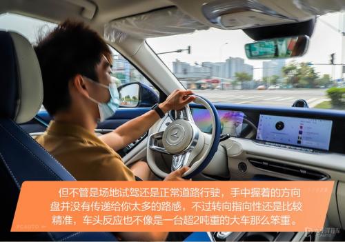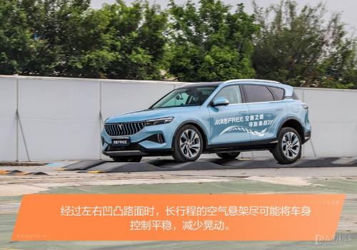 如果你觉得减速带不够过瘾,还有起伏更大的凹凸路面。以15km/h左右的速度经过凹凸路面时,车身摇摆幅度并没有预想中那么明显,上/下100mm调节长行程空气悬架起到了关键作用,而且即便是这种较为颠簸的路面,方向盘也不会出现打手的情况,前双叉臂悬挂的分体式上下控制臂的设计,在这种路况就能让方向更稳定。
