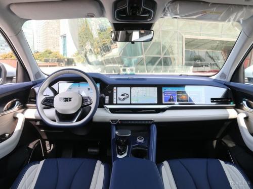 外观方面,新车整体的设计与燃油版车型基本保持一致,沿用了吉利4.0代家族式设计语言。不过前脸中网格栅的样式有所调整,采用了不规则的点阵式设计,并在格栅的两侧加入了可发光的内部光源,同时,新车的前LOGO也同样可以点亮。下方的保险杠也进行了调整,展示出独特的科技感。