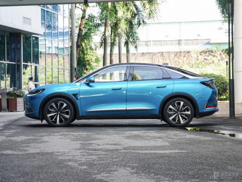 侧面造型设计是阿尔法S的亮点,前后比例均衡、舒展,C柱的设计尽显创意,溜背式车顶和上翘的车尾显得活力十足,更带来0.25Cd的极低风阻系数。黑色轮眉和较高的离地间隙则营造了些许如SUV的硬朗,整体表现出十分独到的美感。