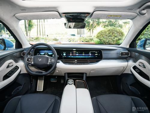 阿尔法S的内装简约且充满档次感,在配色上呈上深下浅的撞色设计,翻毛皮、仿麂皮、纹路精致的饰板等一系列豪华用料足够看出极狐在车厢豪华氛围的营造上不惜成本。4K高清大屏搭配液晶仪表盘和HUD抬头显示的三屏联动则令阿尔法S具有了前沿的科技体验。