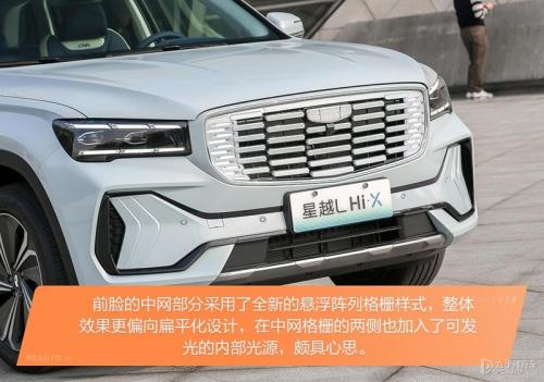 星越L作为吉利旗下最顶级的车型,整个设计风格已经受到了消费者的肯定。因此本次混动版的外观整体的设计与燃油版车型基本保持一致,沿用了吉利4.0代家族式设计语言。不过前脸中网格栅的样式有所调整,采用了不规则的点阵式设计,并在格栅的两侧加入了可发光的内部光源,同时,新车的前LOGO也同样可以点亮。下方的保险杠也进行了调整,展示出独特的科技感。