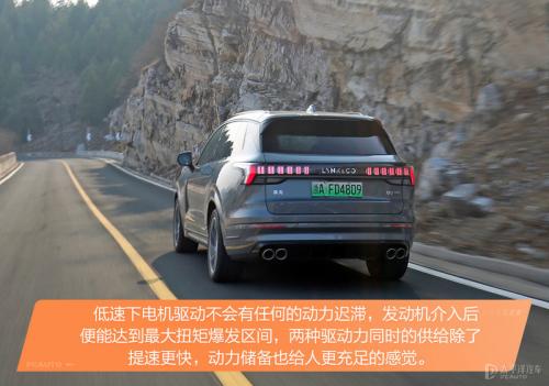 选择领克09 PHEV的朋友最重要理由之一就是对动力有很高的需求,再配备了电动机之后驱动2.3吨重的车身变得更为轻松惬意,激进顺畅的动力响应即便是在混合动力模式下也能让提速动作迅捷有力,因为低速下电机驱动不会有任何的动力迟滞,而在发动机介入之后通常已经达到了最大扭矩爆发区间,两种驱动力同时的供给除了提速更快,动力储备也给人更充足的感觉。