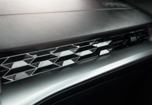 中控台使用窄边缘强纵深的设计体现速度感,六边形元素在内饰设计上广泛应用,包括座椅纹理、门板以及副驾驶前方的钢琴烤漆饰板,另外,空调出风口也隐藏其中。