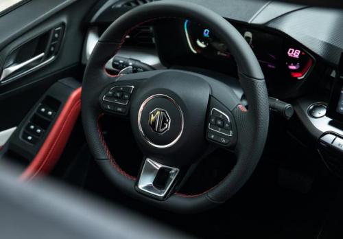 全新名爵5内饰采用红黑撞色设计凸显运动感。整体布局以驾驶员为中心,中控台向左偏转14.1度,加上打孔方向盘与红色缝线,更能激发人们的驾驶欲望。