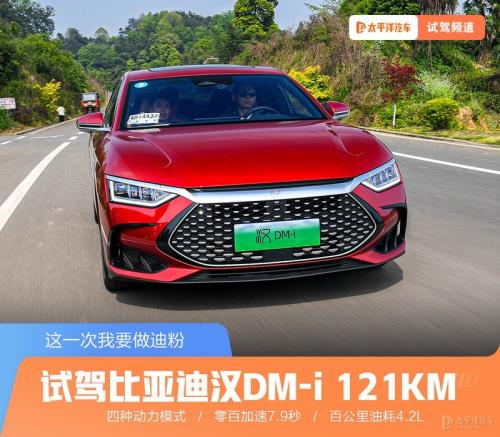 在EV纯电模式下,这台比亚迪汉DM-i的纯电续航里程可以达到121km和242km,满油满电续航里程可以达到1300km。而在油门开度较大时,发动机会在系统根据电量来选择与电机并联或者串联模式,在电量较高时,发动机会配合纯电驱动系统并联与动力驱动方式,形成并联模式,适用于对动力需求最高的模式。