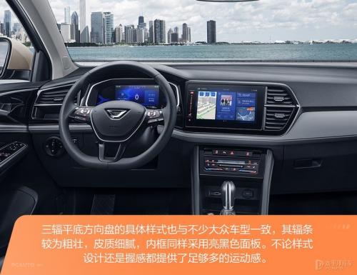 新捷达VS7内装的整体样貌与数款大众系SUV很接近,其中控台在线条设计上追求运动硬朗和强烈的层次感,并大幅朝主驾侧倾斜。因而坐上主驾位置感觉颇有驾驶欲望,这点有别于很多SUV车型。