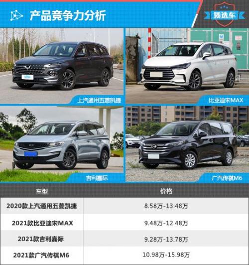 当前国内紧凑型MPV市场中,自主品牌依然占据着主导地位,合资品牌的产品规模和市场份额均不大。而具体到10万级家用紧凑型MPV来说,五菱凯捷需要面对的对手其实并不多,除了上市多年的比亚迪宋MAX和吉利嘉际,刚推出不久的广汽传祺M6也是比较有实力的一款车型。