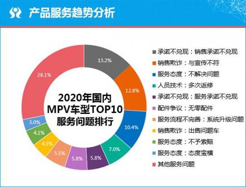 随着我国汽车市场的不断发展,汽车产品的品质趋于大同,价格也出现高度重叠,消费者购买车辆的侧重点已更多地放在了产品附加值——服务上。品牌售前/售后服务的水平高低,购买体验的好坏已逐步成为消费者最终购买的重要因素。因此我们将基于车质网海量大数据,通过对过去一年国内MPV普遍存在的服务问题进行分析,为消费者购买车型提供更为客观的参考依据。
