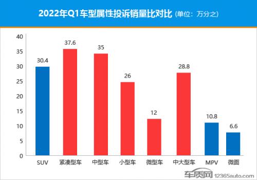 投诉销量比表现不及SUV紧凑型车和中型车拖后腿