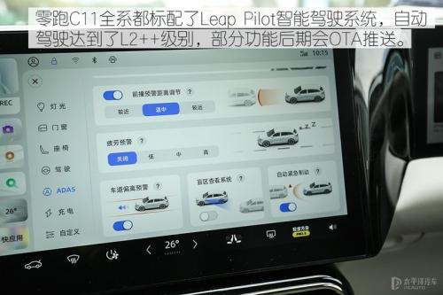 当然抛开芯片不说,C11在感知传感器数量上,可以说是同价位前所未有的奢华,它全系标配28个高精度感知硬件,包括1个双目摄像头、1个前向毫米波雷达、4个角向毫米波雷达、12个超声波雷达、4个环视摄像头、4个盲区摄像头与1个人脸识别摄像头,目前已经能实现全速域的ACC自适应巡航、AEB自动紧急制动、LDW车道偏离预警、TSR交通标志识别、APA自动泊车辅助等功能,未来通过OTA可以实现ALC自动变道、类似特斯拉NoA那样的领航辅助功能。