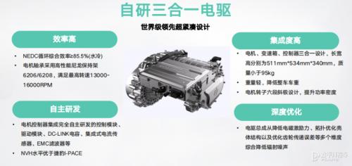 目前零跑已经实现了自研平台、自研芯片、自研三电系统的能力,成为特斯拉之后,第二家打通整车+芯片+算法+数据闭环研发的车企。在产品层面,零跑已经有T、S、C三个平台,而且还自研了首个“8合1”电驱总成“Heracles”,NEDC循环综合效率已经超过85%,而且其电机控制器、驱动模块等等都是完全自研的,目前这套技术已经搭载在零跑三款车型上。