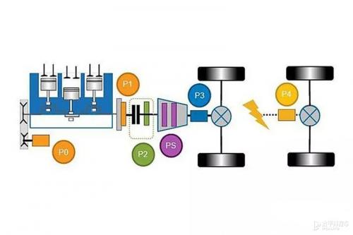 (从P0到P4分别表示的电机布置方式,数字越小越靠近发动机。)