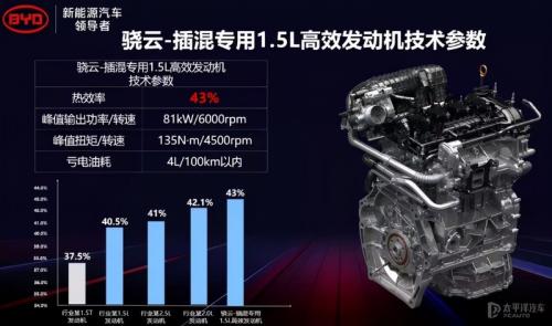 前面说到比亚迪的军舰系列往后都是采用比亚迪DM-i超级混动,这套混动系统包括骁云-插混专用1.5L高效发动机、EHS电混系统、DM-i超级混动专用功率型刀片电池核心零部件。其中骁云-插混专用1.5L高效发动机专为DM-i超级混动技术打造,热效率达到43%,峰值功率可达81kW/6000rpm,峰值扭矩135N·m/4500rpm,具有15.5超高压缩比、阿特金森循环、EGR冷却等诸多革命性的变化。最重要的是相比上一代车型,像比亚迪插电式混合动力专用高效发动机摩擦损失减少10%、整机轻量化减重10公斤,不充电油耗控制在4L/100km以内,同时排放满足“国六b”排放标准。