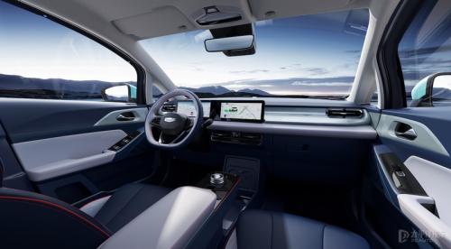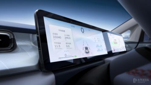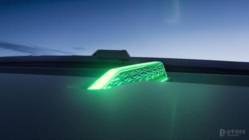 仪表台上方则采用了灵感之光交互功能灯设计,交互功能灯可与用户进行“对话”,通过色彩与光效的变化,提示用户车辆解锁、充电与启动状态,同时还具备迎宾灯语、欢送灯效、呼吸显示等功能。