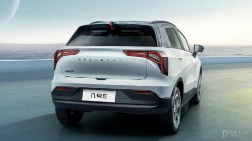 几何E车身尾部上方采用了运动双尾翼设计,以及「GEOMETRY」英文的加入,搭配LED尾灯,点亮后有独特的视觉效果。车身尺寸方面,新车长宽高分别为4006/1765/1550mm,轴距为2485mm。同时,几何E搭载了螺旋桨式五幅轮毂,专为低风阻而打造。