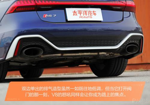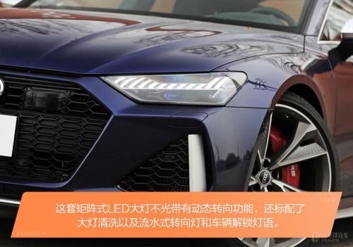 不得不说,奥迪的RS系列有着自己独特的设计思路,比如前保险杠向外延伸的夸张进气口,又比如全新的C8平台下低矮的车身姿态,再比如为了容纳285mm胎宽所外扩的轮眉,以上种种都让RS7 Sportback在精神层面得到了升华。除此之外,作为A7 Sportback的高性能版,其整个车身的设计风格都是那种收敛后的嚣张,带有一丝痞气也能不怒自威。